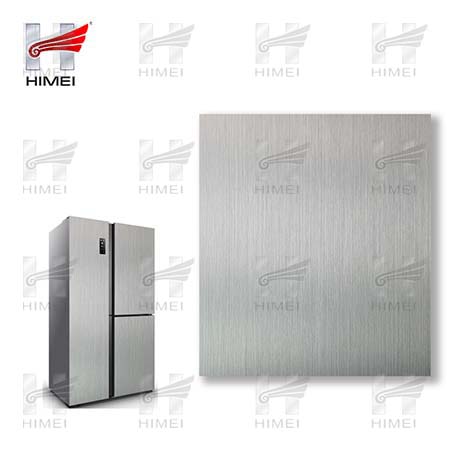 家電用覆膜鋼板,就是鋼板的基材上面覆了一層PET膜/PVC膜,然后通過(guò)覆合貼覆而成,主要應(yīng)用在各類家電外殼裝飾上,例如冰箱、洗衣機(jī)、電飯煲等外殼部件。覆膜是一種物理工藝,一層膜一層鋼板經(jīng)過(guò)高溫高壓壓合而成。